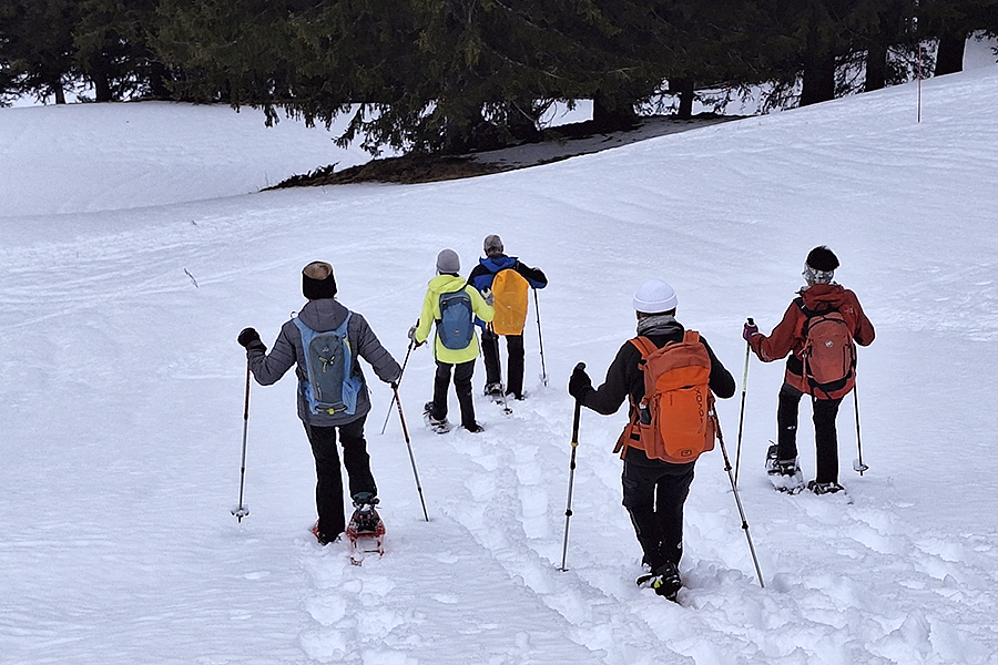 Schneeschuh-Ersatztour aufgrund Schneemangels im Gebiet Morgertenberg.
